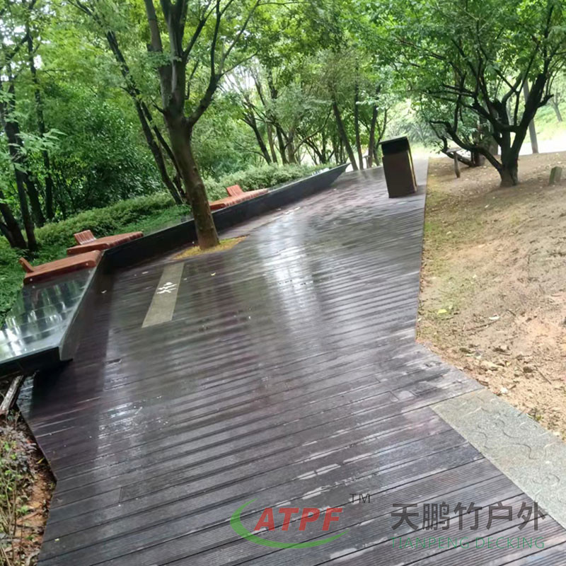 Le plancher en bambou lourd extérieur Tianpeng a également été choisi pour le plancher extérieur du parc forestier de Dongtai Huanghai.Ce type de plancher est devenu le premier matériau de choix pour les sols extérieurs en raison de sa protection de l'environnement, anti-corrosion, anti-mousse, ignifuge, résistant aux termites et résistant aux températures élevées.